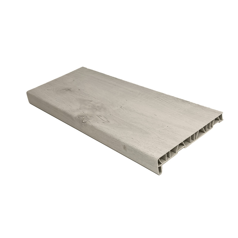 Parapet PCV w kolorze Dąb śnieżny nie chłonie wilgoci i pozostaje odporny na codzienne użytkowanie. Kolor nawiązuje do ciepłych tonów drewna i sprawia, że parapet dobrze komponuje się z ramami okien w klasycznych aranżacjach i z bardziej nowoczesnymi przestrzeniami. Dzięki temu pasuje do wielu stylów wnętrzarskich, od tradycyjnych po minimalistyczne.